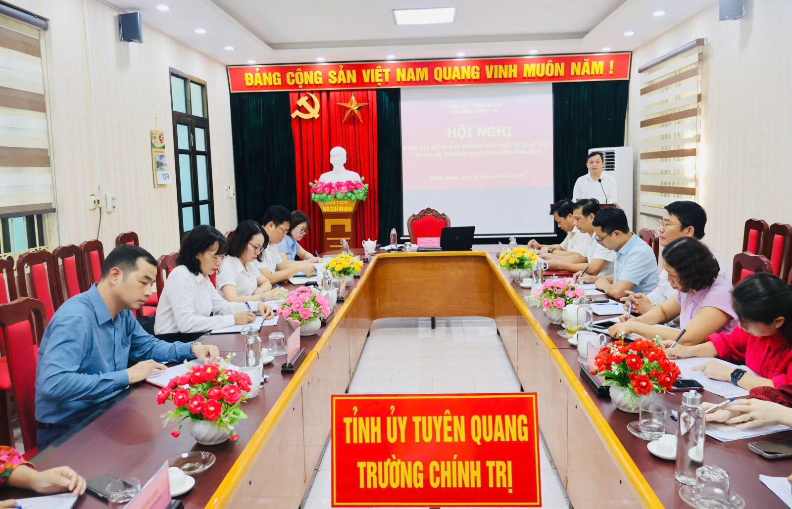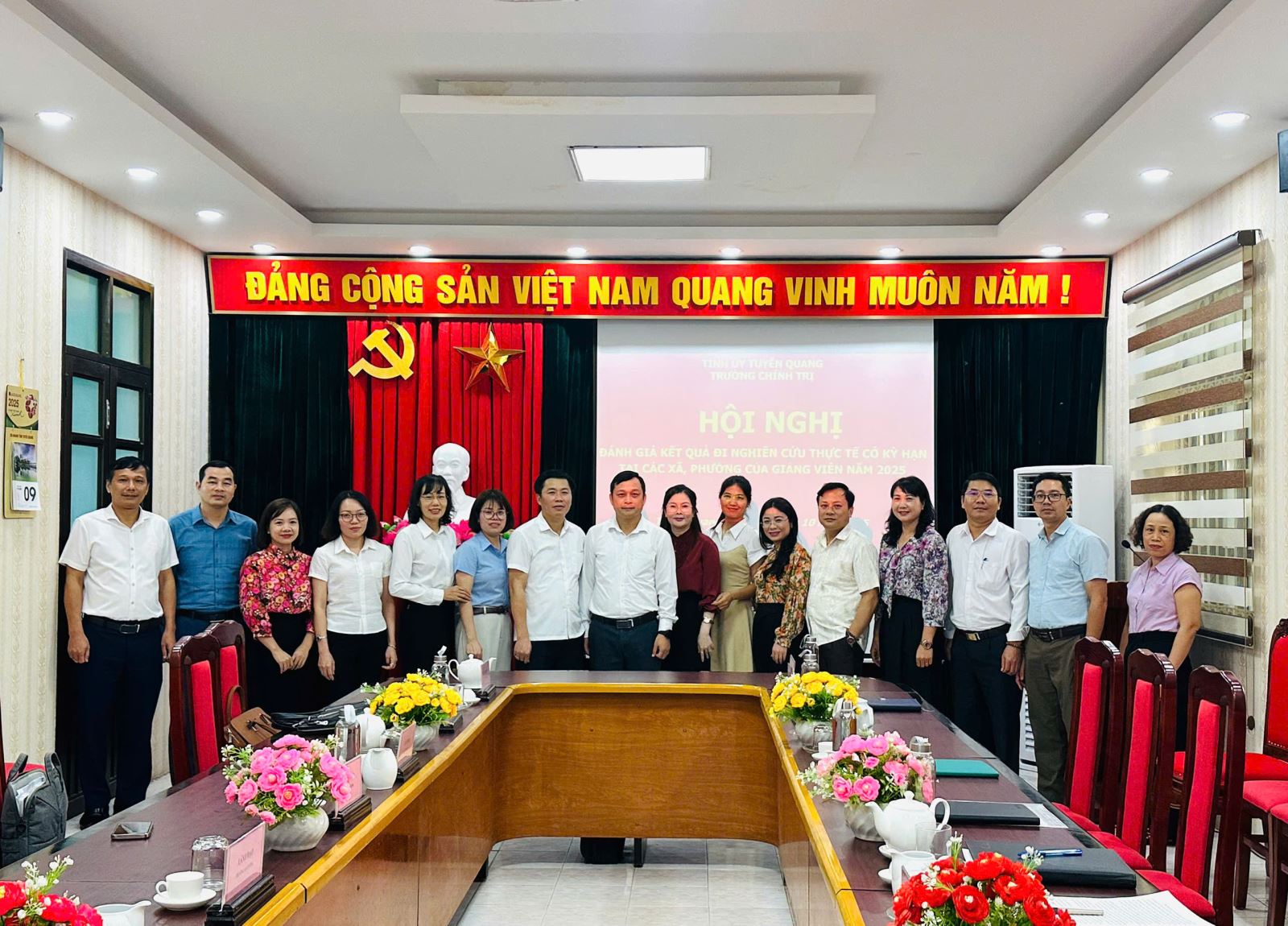 Thực hiện Quyết định số 662-QĐ/TU ngày 22/9/2022 của Ban Thường vụ Tỉnh ủy phê duyệt Đề án “Đưa cán bộ lãnh đạo, quản lý các khoa, phòng; giảng viên đi nghiên cứu thực tế có kỳ hạn giai đoạn 2022–2030”. Ngày 09/10/2025, Trường Chính trị tỉnh Tuyên Quang tổ chức Hội nghị đánh giá kết quả đi nghiên cứu thực tế có kỳ hạn tại các xã, phường của giảng viên năm 2025. Dự Hội nghị có các đồng chí trong Ban Giám hiệu, lãnh đạo các khoa, phòng; các giảng viên được cử đi nghiên cứu thực tế; đại diện lãnh đạo các xã, phường: Yên Sơn, Tân Long, Thái Bình, Minh Xuân, An Tường.