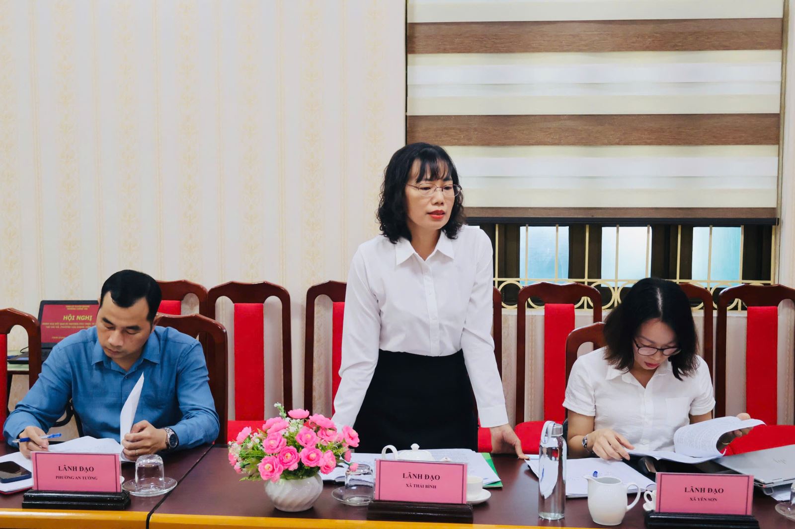 Đồng chí Nguyễn Thị Hiếu, Phó Chủ tịch Ủy ban nhân dân xã Thái Bình phát biểu nhận xét, đánh giá giảng viên đi nghiên cứu thực tế