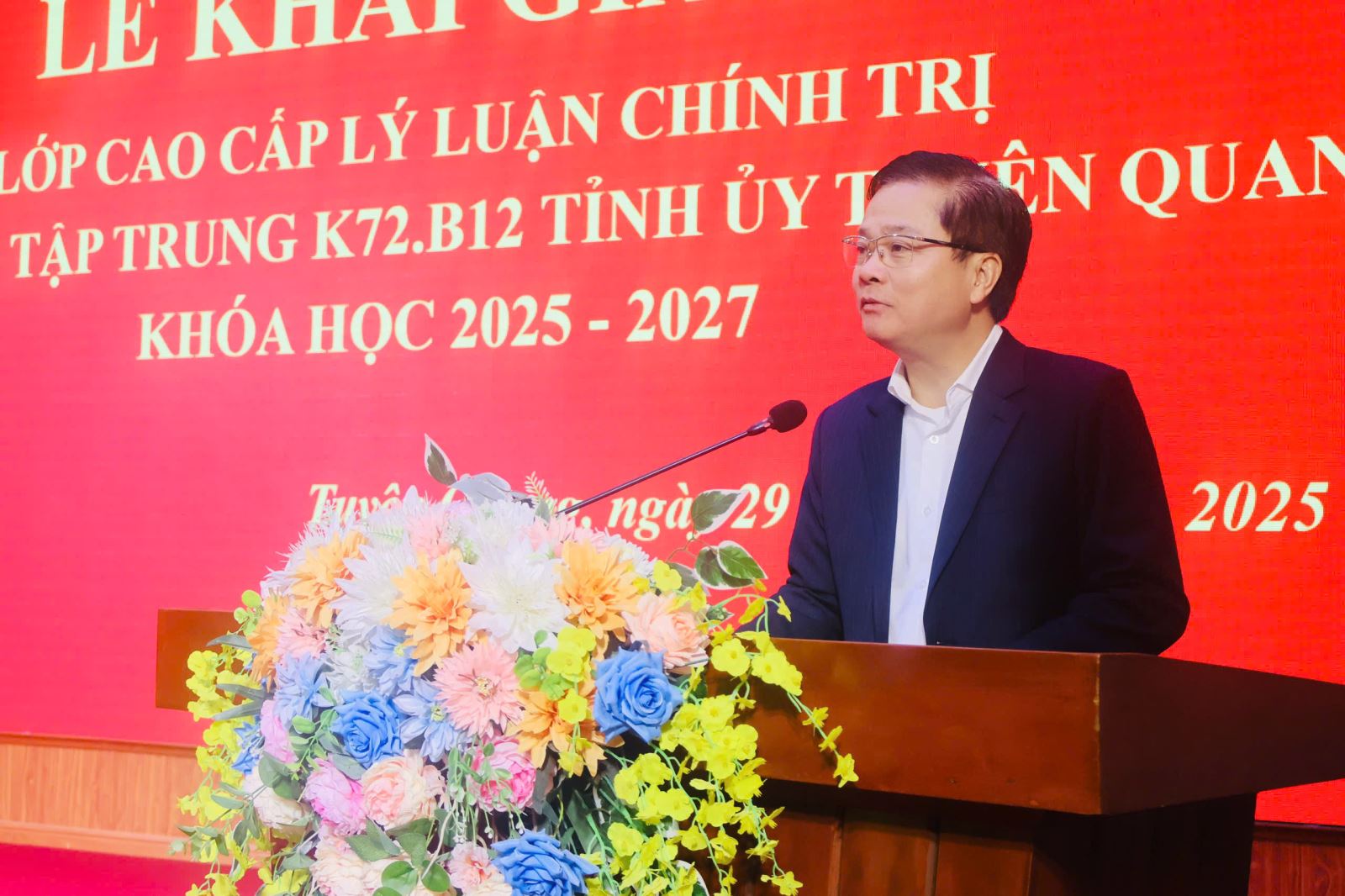 Lớp học được tổ chức trong bối cảnh đất nước ta nói chung, tỉnh Tuyên Quang nói riêng thực hiện cuộc cách mạng về tổ chức bộ máy “sắp xếp lại giang sơn”, tạo đột phá cho không gian phát triển, mở ra chặng đường mới chính quyền kiến tạo, phục vụ nhân dân. Theo Quy định số 350- QĐ/TW ngày 29/8/2025 của Ban Bí thư về đối tượng, tiêu chuẩn và phân cấp đào tạo lý luận chính trị, các lớp cao cấp lý luận chính trị mở ra nhằm mục tiêu: Trang bị cơ bản, hệ thống, thực tiễn và hiện đại chủ trương, đường lối của Đảng và chính sách, pháp luật của Nhà nước; nâng cao tầm nhìn, tư duy chiến lược; nâng cao kỹ năng lãnh đạo, quản lý và vận dụng thực tiễn.