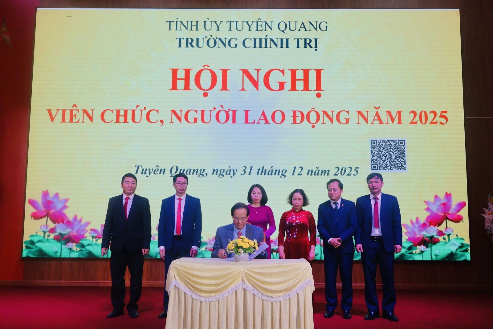 Sáng ngày 31/12/2025, Trường Chính trị tỉnh tổ chức Hội nghị viên chức, người lao động năm 2025. Chủ trì Hội nghị có đồng chí Phạm Sỹ Hùng, Bí thư Đảng uỷ, Hiệu trưởng; đồng chí Phạm Văn Dũng, ủy viên Ban Thường vụ Đảng uỷ, Phó Hiệu trưởng đồng chủ trì hội nghị; dự hội nghị có các đồng chí trong Đảng ủy, Ban Giám hiệu, lãnh đạo và giảng viên, nhân viên các khoa, phòng Trường Chính trị tỉnh.