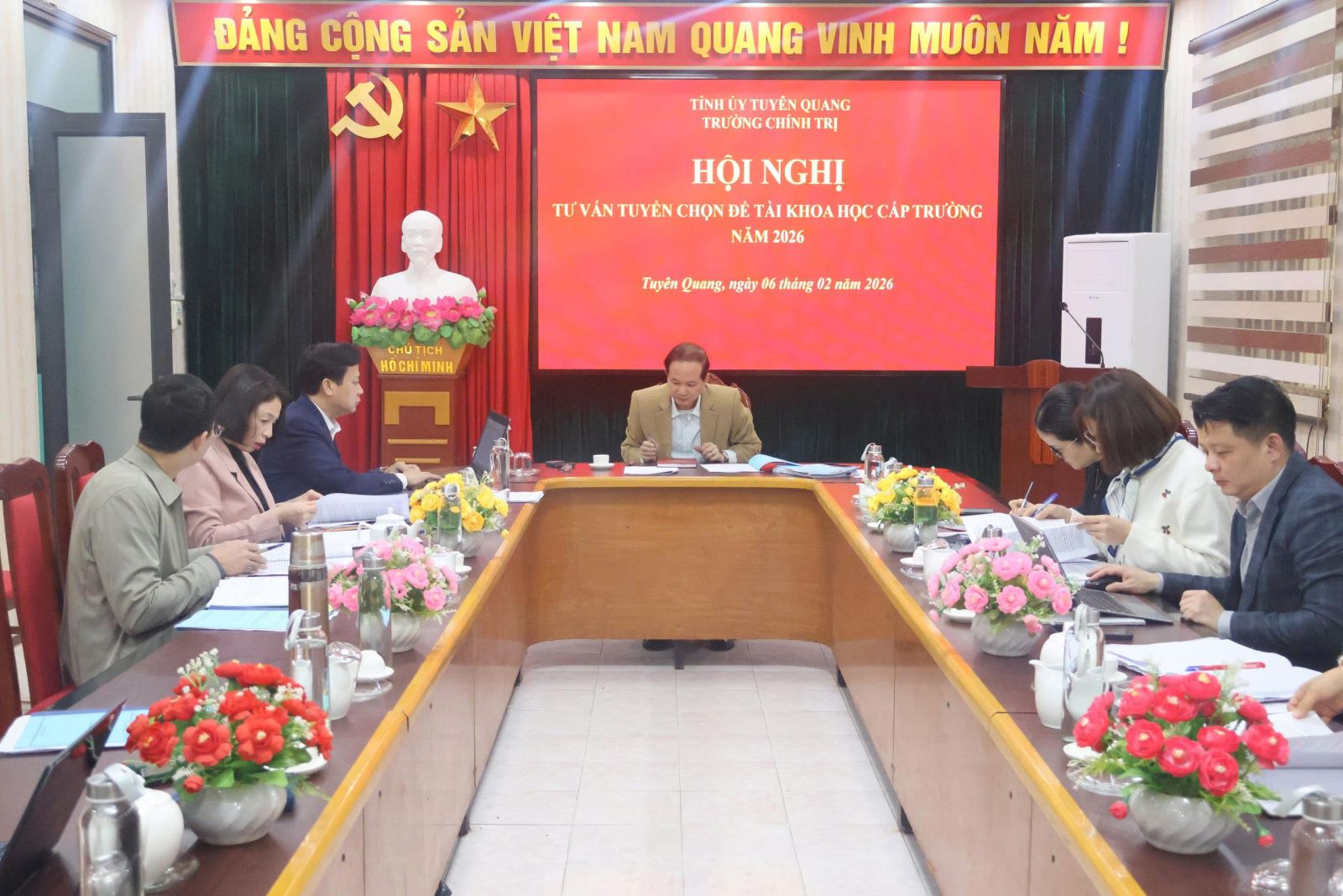 Thực hiện Kế hoạch số 75-KH/TCT ngày 15/01/2026 của Trường Chính trị tỉnh về hoạt động nghiên cứu khoa học, nghiên cứu thực tế năm 2026; sáng ngày 06/02/2026, Trường Chính trị tỉnh Tuyên Quang tổ chức Hội nghị tư vấn tuyển chọn đề tài khoa học cấp trường năm 2026.