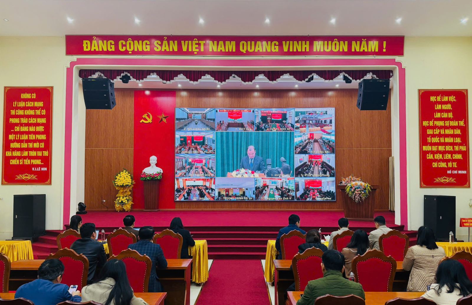 Cán bộ, đảng viên Trường Chính trị tỉnh tham dự Họp báo trực tuyến phát động cuộc thi chính luận