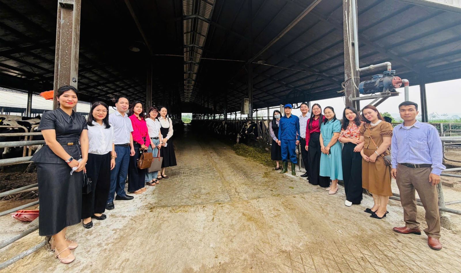 Ảnh: Đoàn NCTT của Khoa LLCS tại trang trại nuôi bò sữa thuộc Công ty cổ phần Hồ Toản