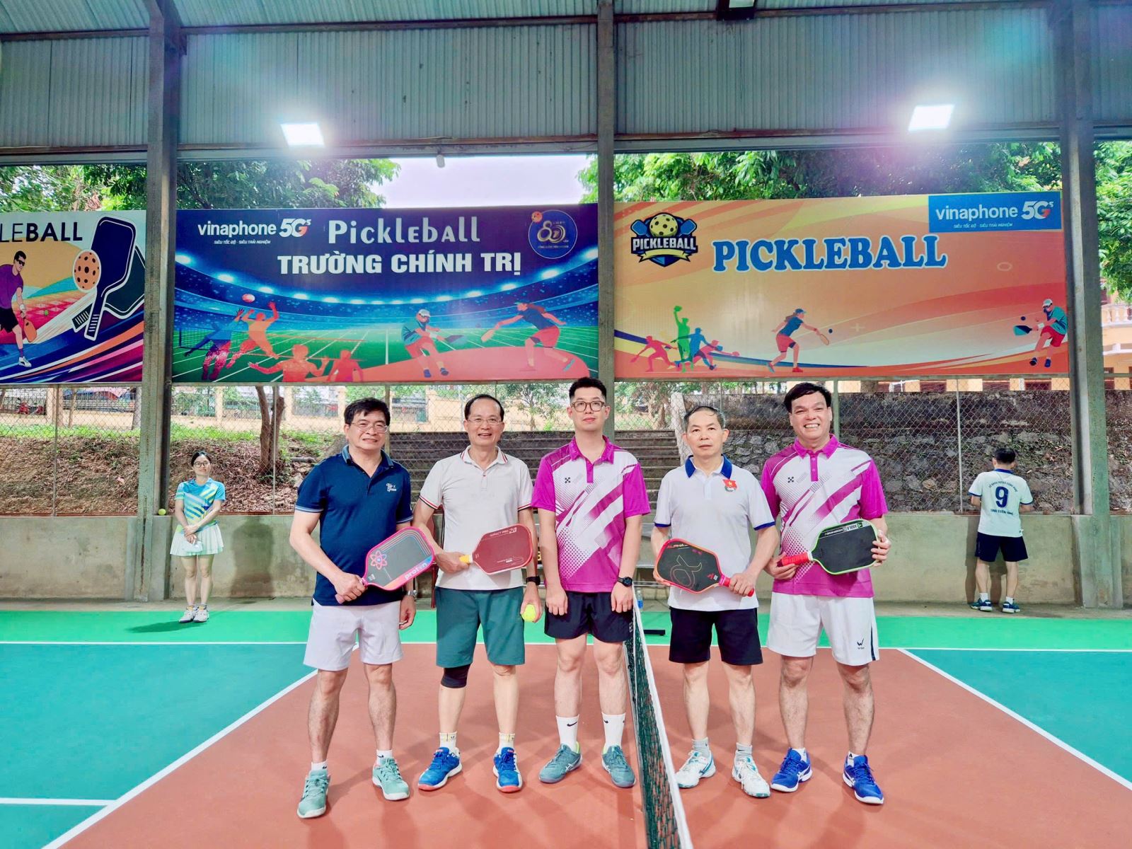 cùng lãnh đạo các đơn vị tham gia giao lưu môn Pickleball, nội dung đôi nam lãnh đạo