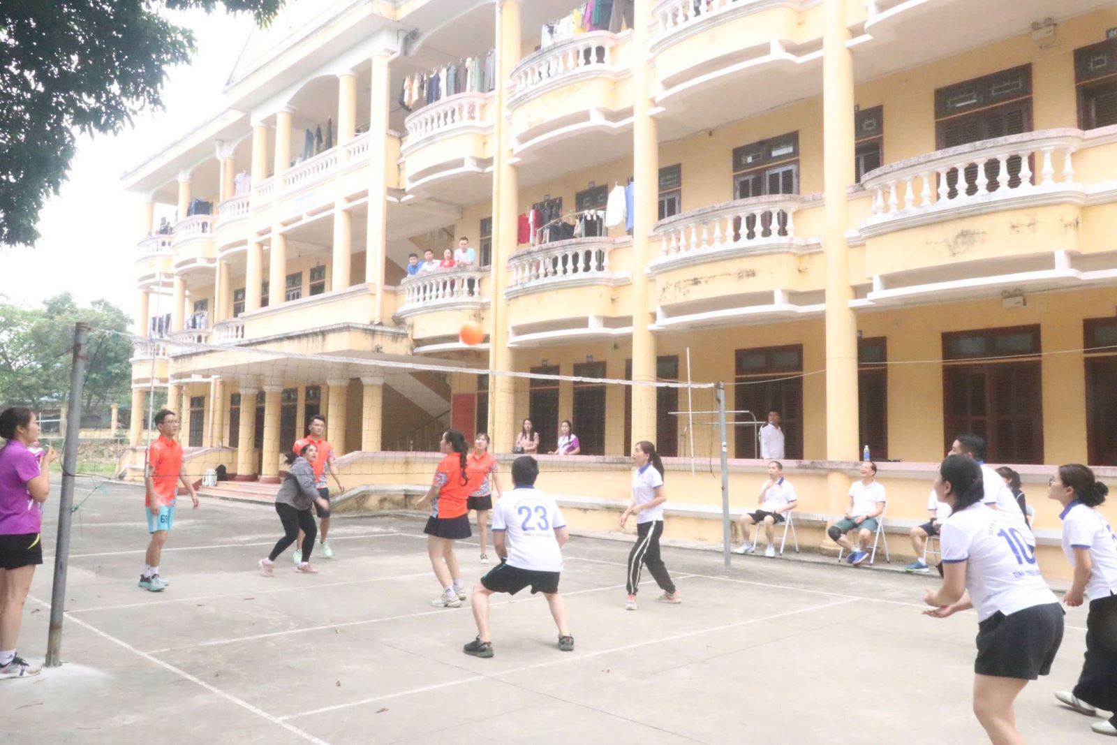 Ảnh: Các đoàn viên tham gia giao lưu môn bóng chuyền hơi