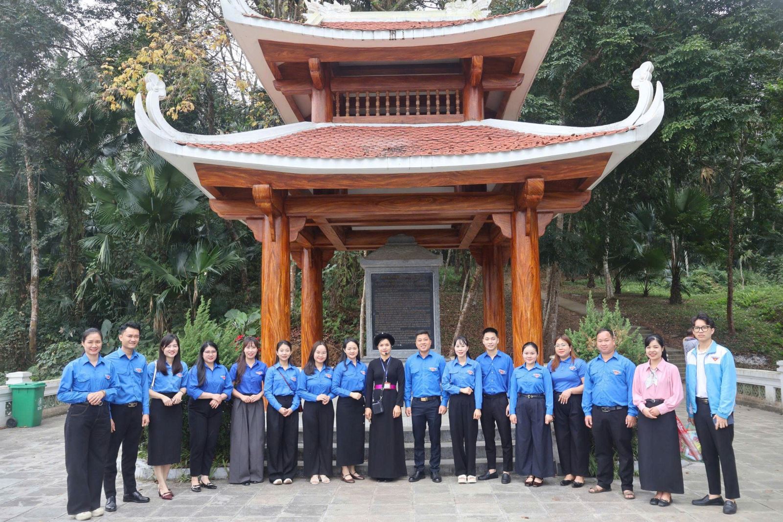 Ảnh: Các đoàn viên Chi đoàn và đại diện Đoàn xã Kim Bình chụp ảnh lưu niệm tại Khu di tích Quóc gia đặc biệt Kim Bình